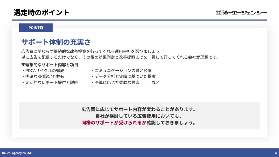 広告の成果を最大化するには、企画・設計や運用の専門知識と経験が不可欠です。広告運用会社を選ぶ際に重視すべきポイントについて、その理由とともに解説しています。